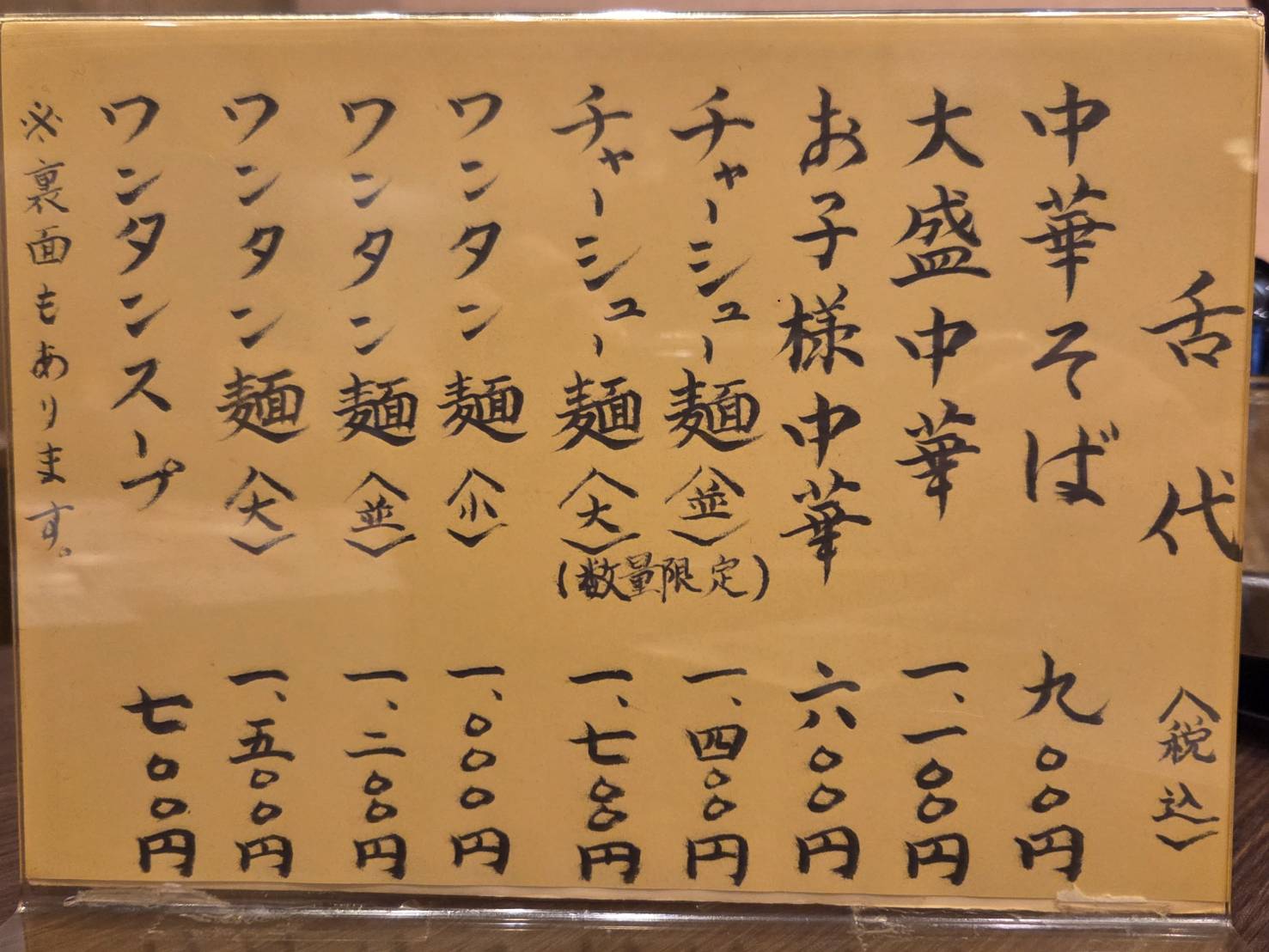 ワンタン麺(小)1000円 (並)1200円 (大)1500円