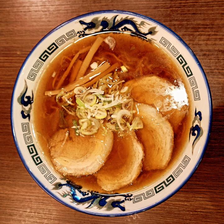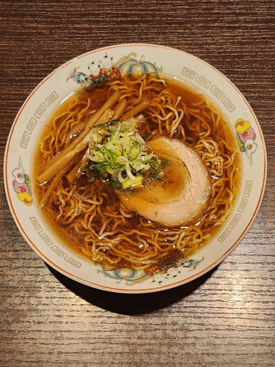 醤油をベースに豚骨、野菜などを加えた澄んだスープに