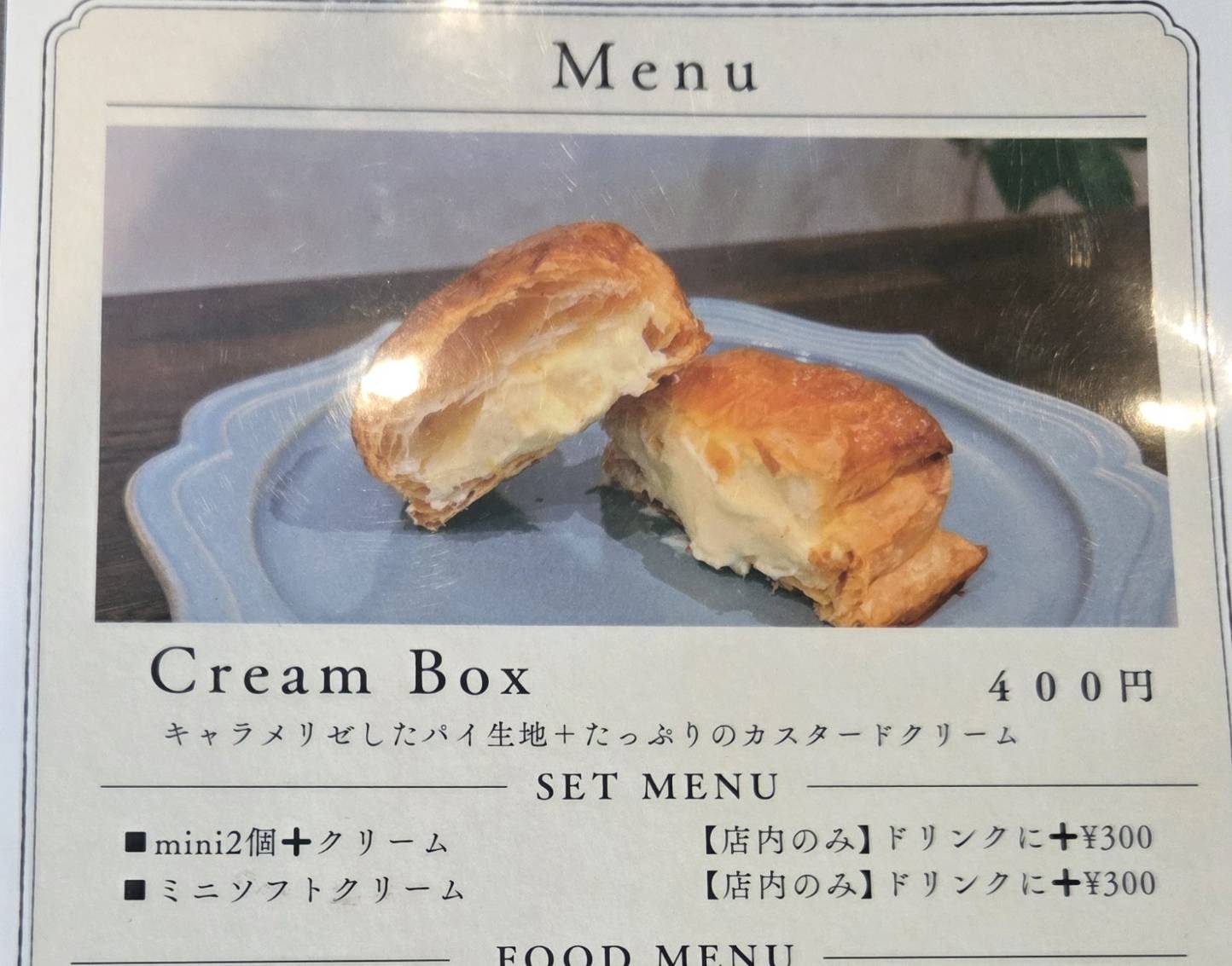 神楽台の屋台蔵の目の前にある、カフェたまゆら。一番人気のCream Boxや、たまゆらプリン、豆にこだわったコーヒーなど落ち着く店内で召し上がれます。Cream Boxは、キャラメリゼしたパイに甘さ控えめのCreamをたっぷりつめています。
