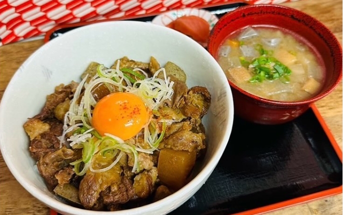 TKG牛すじ煮込み丼(みそ汁、漬物付き) 1500円
