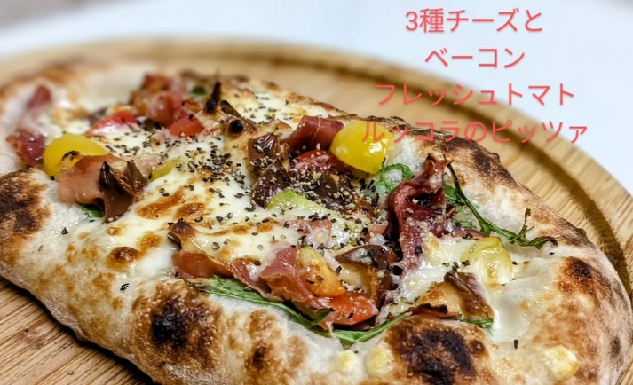 3種のチーズとベーコンフレッシュトマトルッコラのピッツァ 1300円