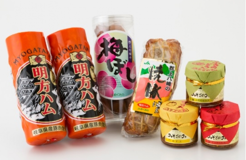 【郡上特産品ギフト】明方ハム(郡上八幡限定)2本・焼豚・ 筒梅各1個・みそごのみ3種セット/4,500円~4,780円