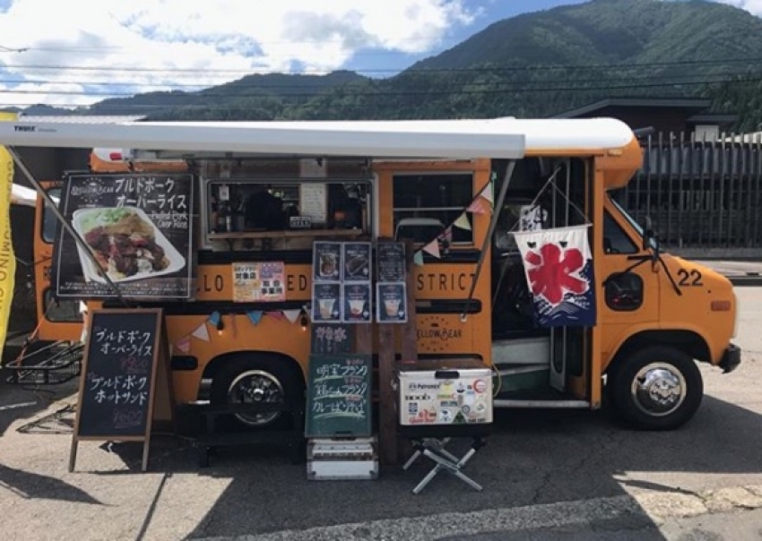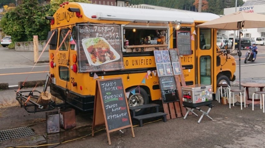 アメリカで実際に使用されていたスクールバスを改造したフードトラック。