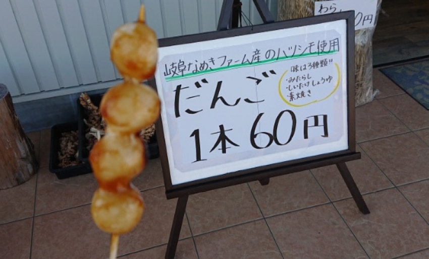 1本60円の【だんご】は、無農薬のお米から手作りで店舗で焼いて提供しております。