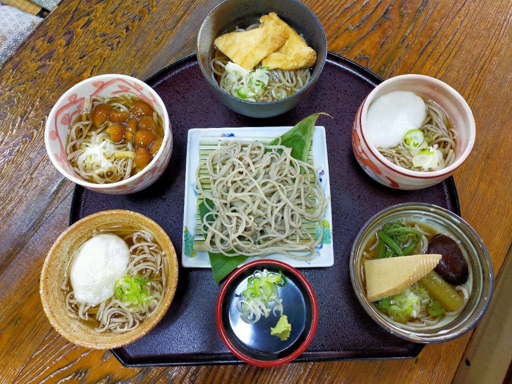 手打ちざるそば・山菜そば・ちょっとづつ彩りそば6種・ちょっとづつ彩りそば3種地元産無農薬生イチゴかき氷・地元産ぶどうかき氷