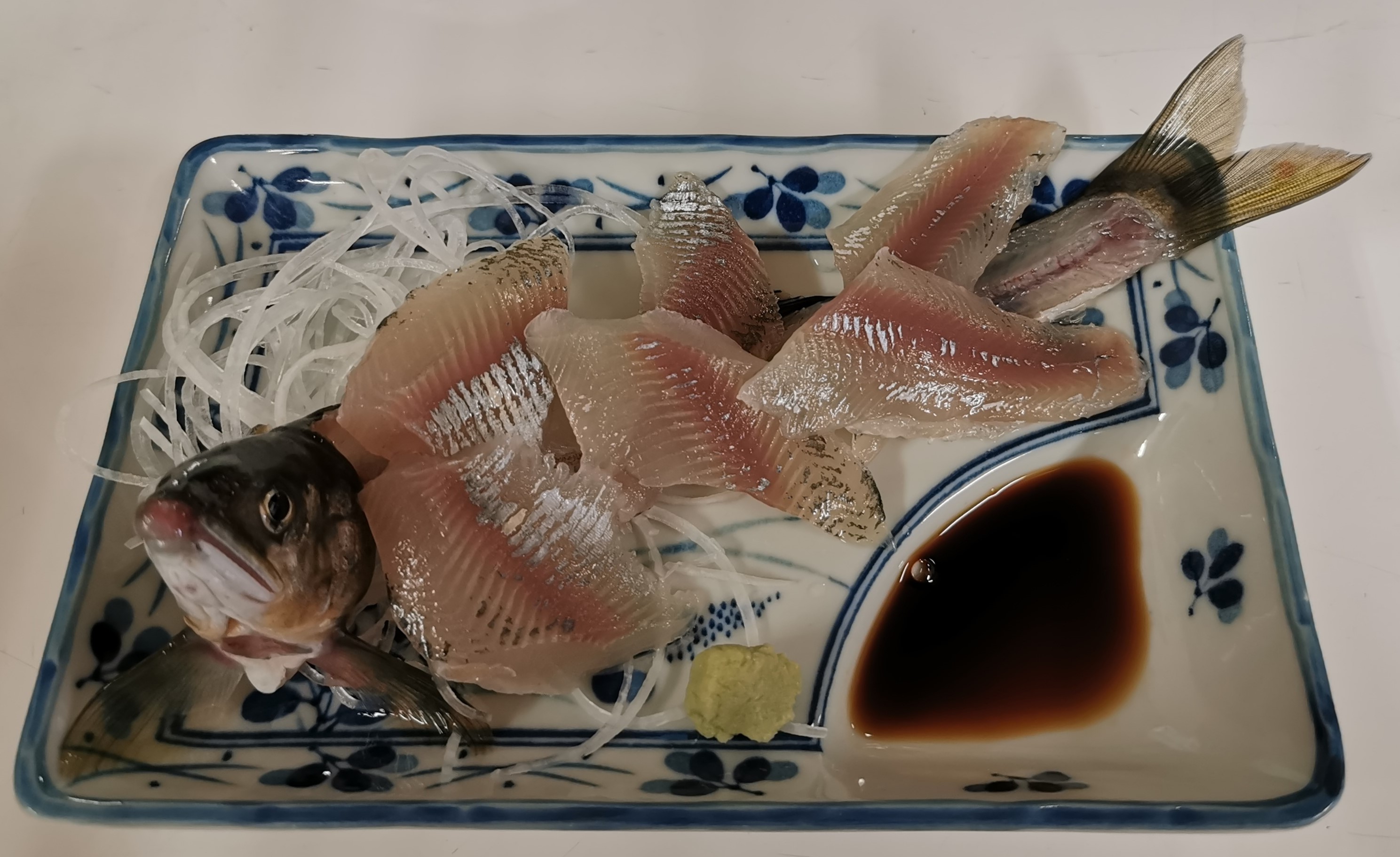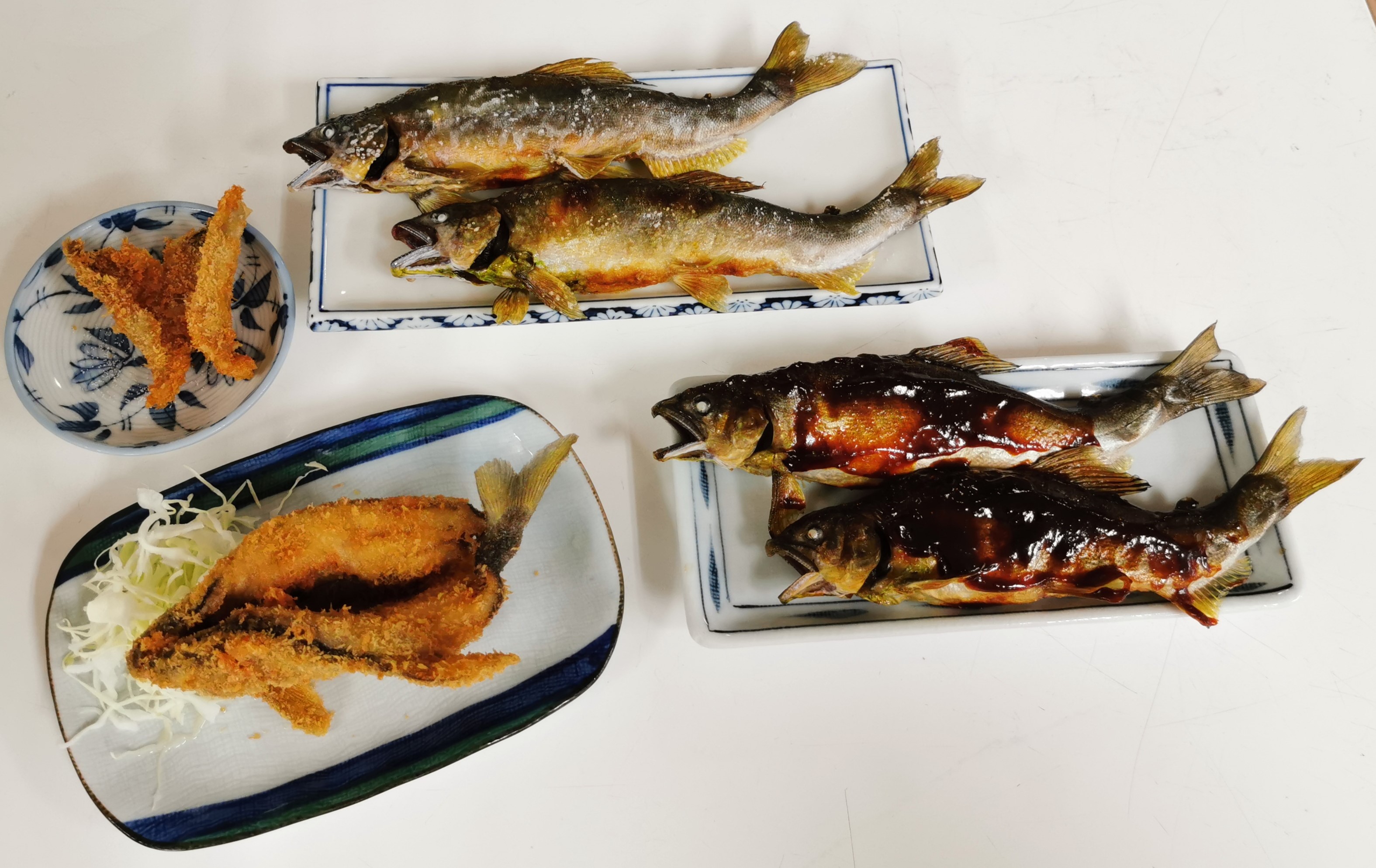 ・鮎料理一式/4,400円 ( 塩焼2匹・魚田2匹・刺身1匹・フライ1匹・酢の物1匹・雑炊一人前 )・酢の物/660円 ( 一匹 )
