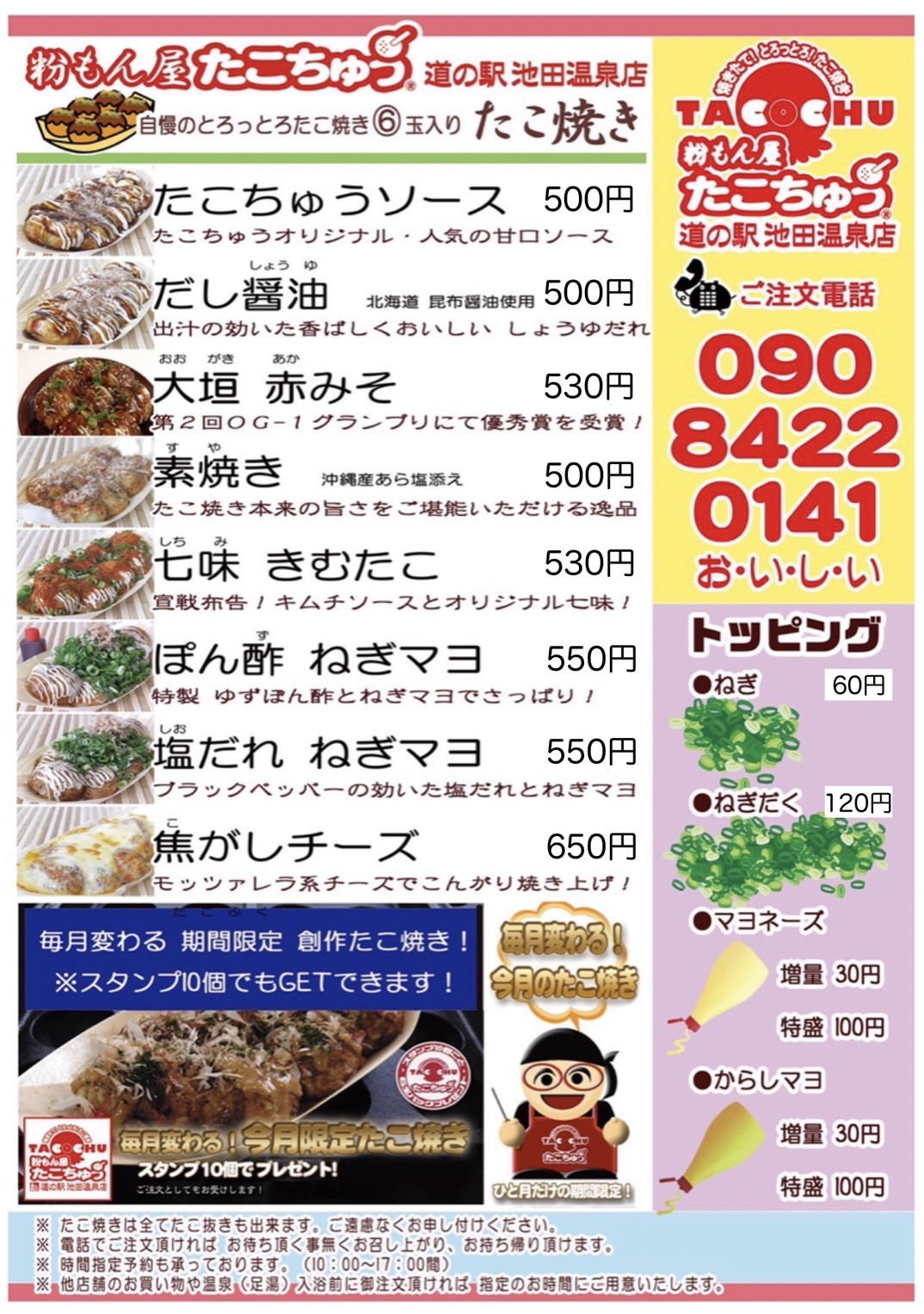 大垣市木戸屋醸造の赤味噌と醤油を使用した粉もん屋たこちゅう道の駅池田温泉店限定のオリジナルたこ焼きです。