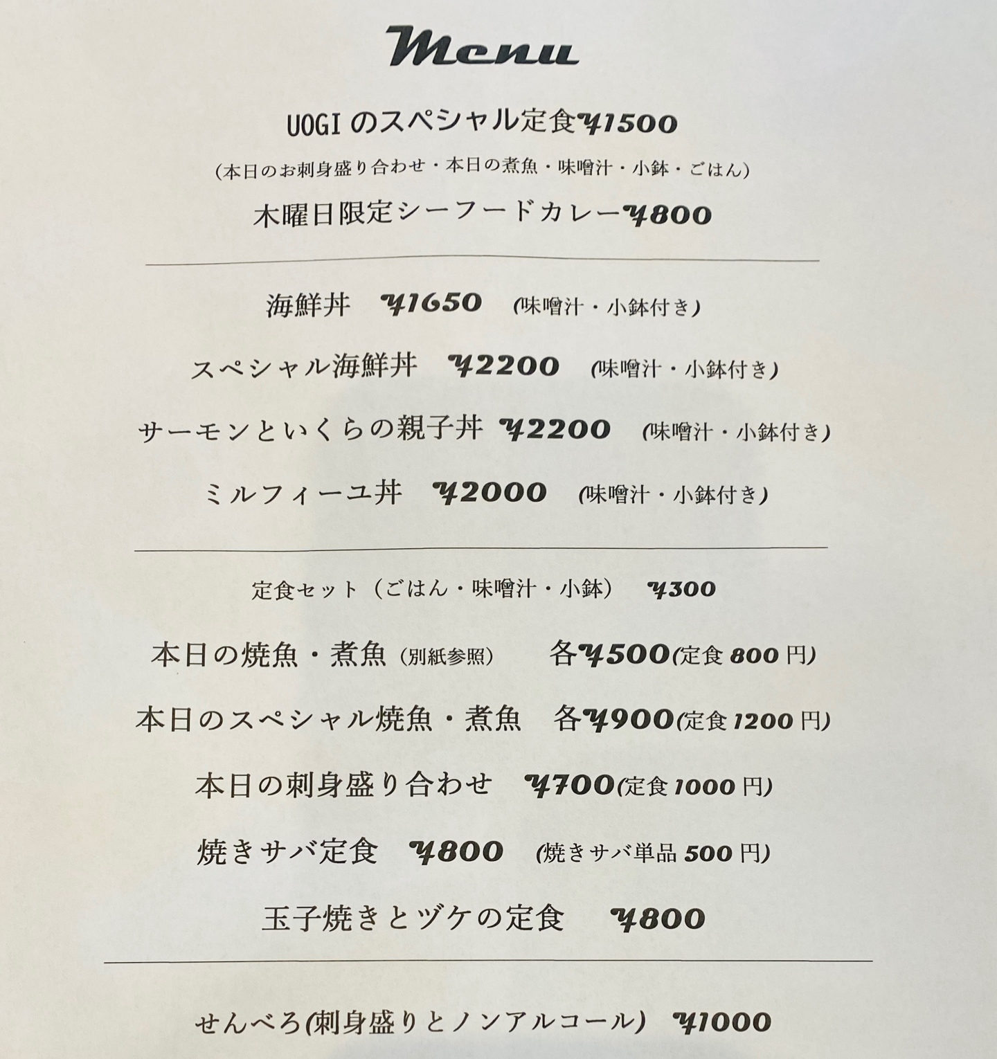 本日の焼魚定食/800円※