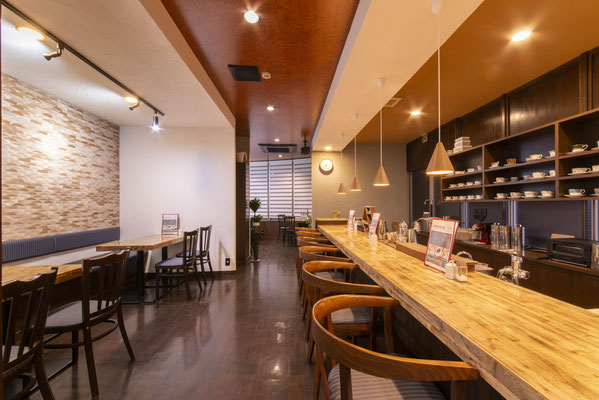 岐阜県産材の木のぬくもりが感じられる、全席禁煙の店内は、落ち着いた雰囲気で、女性お1人でもゆっくり過ごせます。