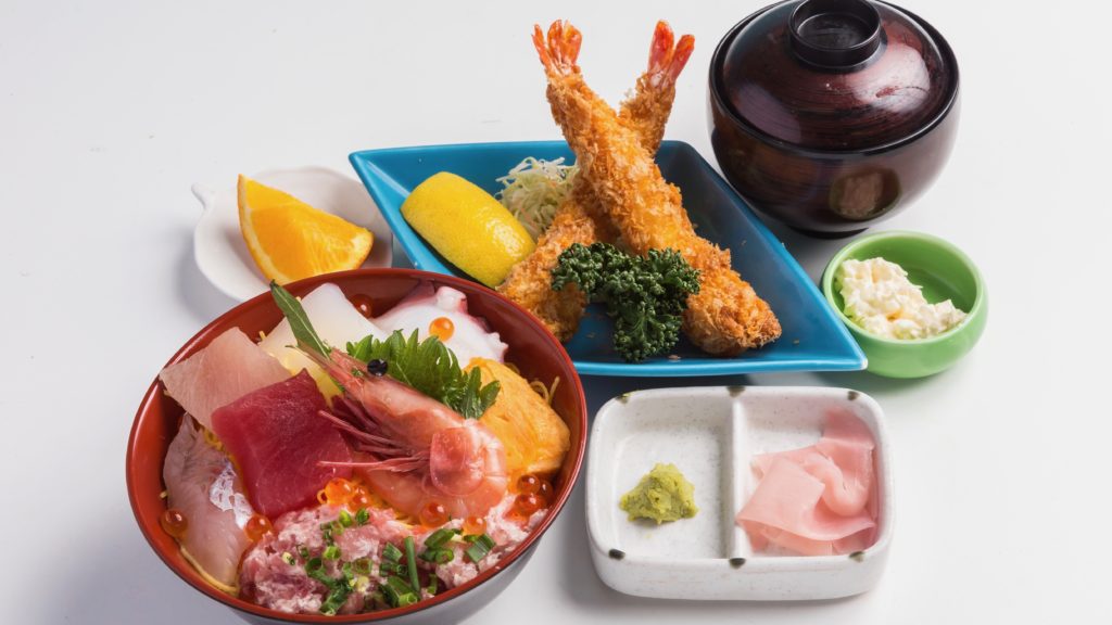 選べる月替わり海鮮丼セット/1,200円お手軽海鮮丼と焼き魚のセット/1,200円 ( 30食限定 )