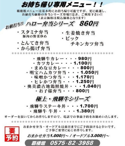 岐阜名産の飛騨牛を使用したメニュー各種がございます。