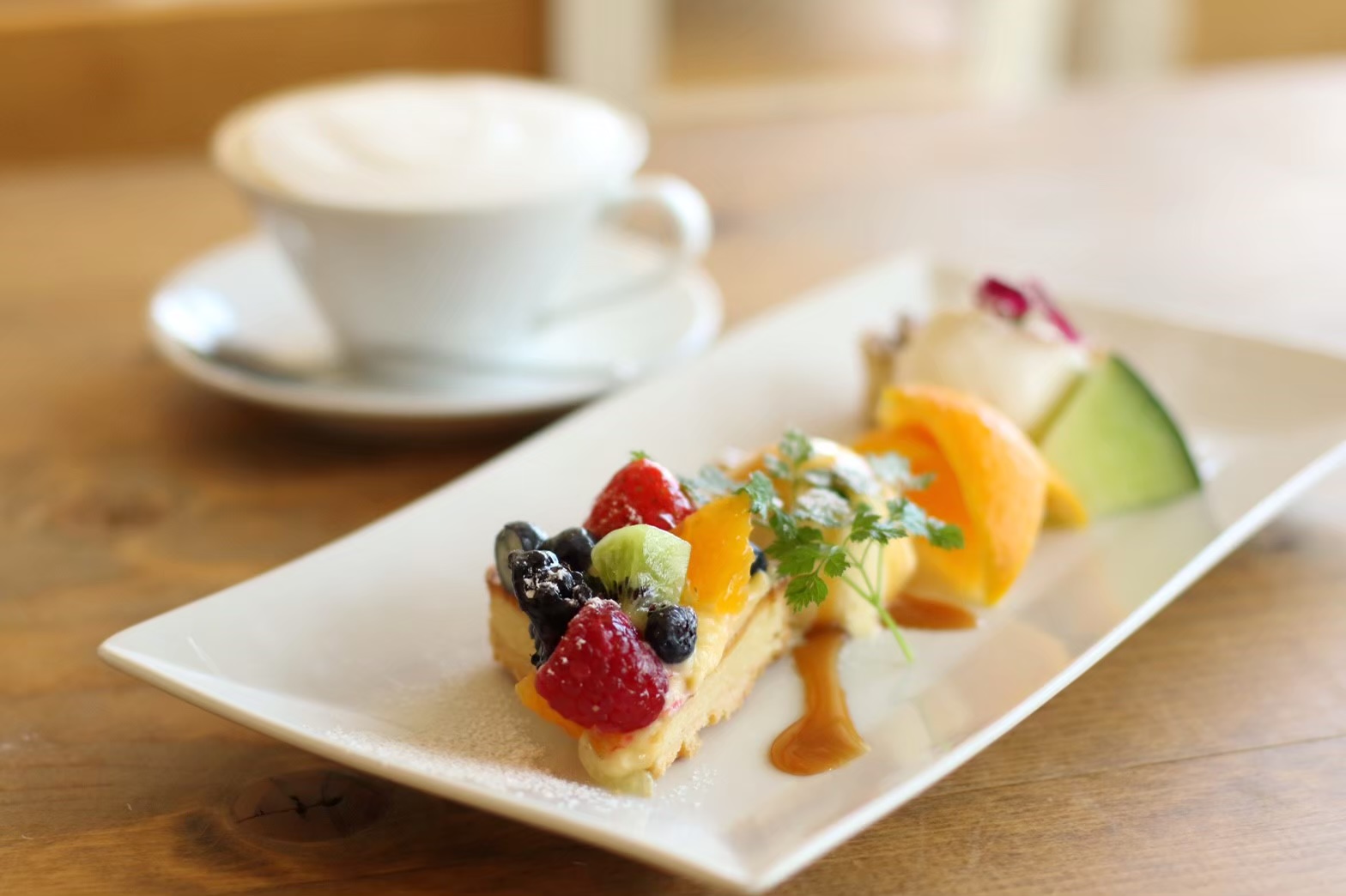 カフェスペースでは、モーニング、ランチ、デザート、ドリンクメニューなどのカフェメニューを楽しむ事ができます。