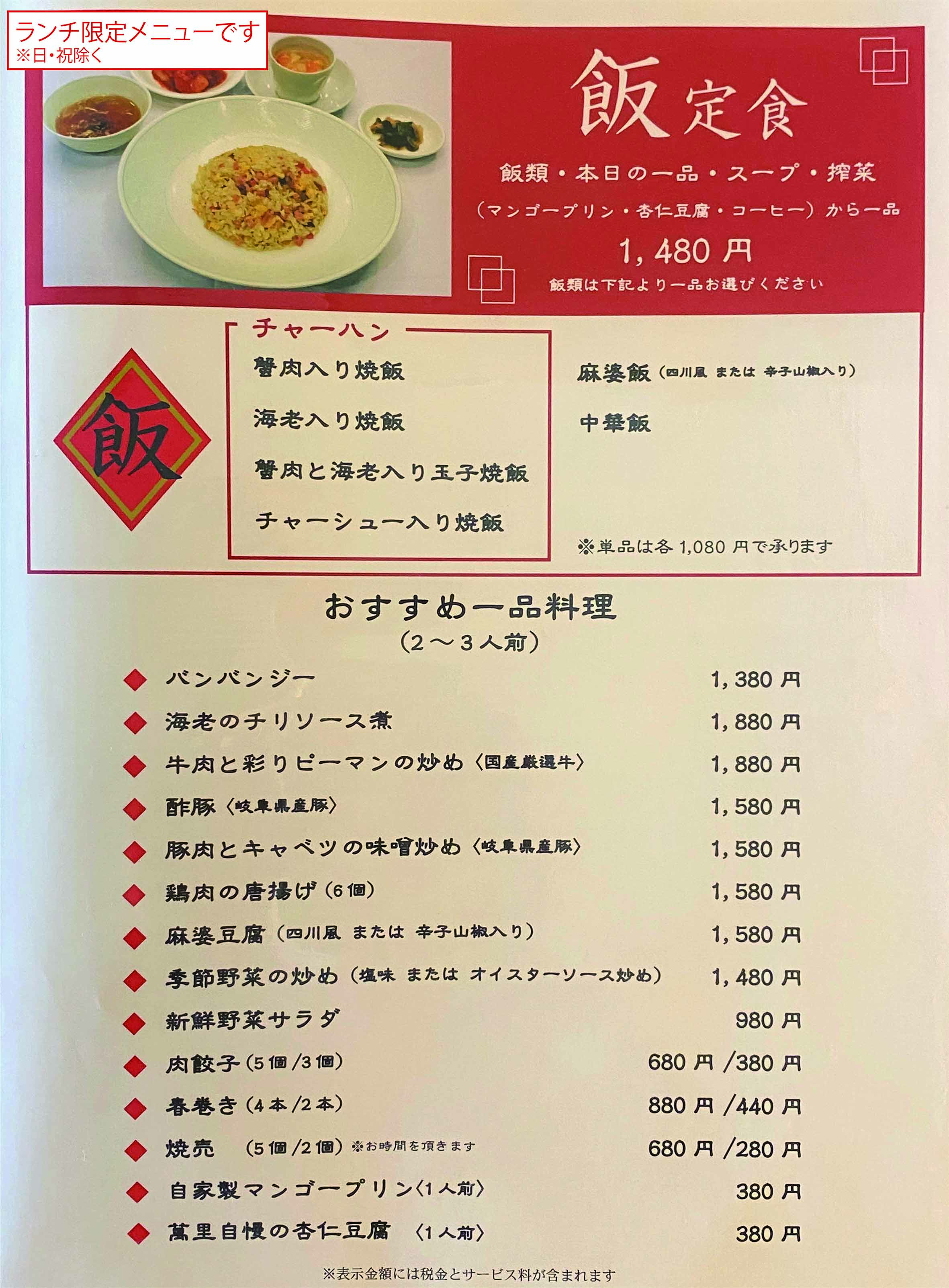 中華料理 アジア・エスニック 肉料理 魚料理 ラーメン お弁当 野菜・果物 飲料 ランチ ディナーご予約・設備