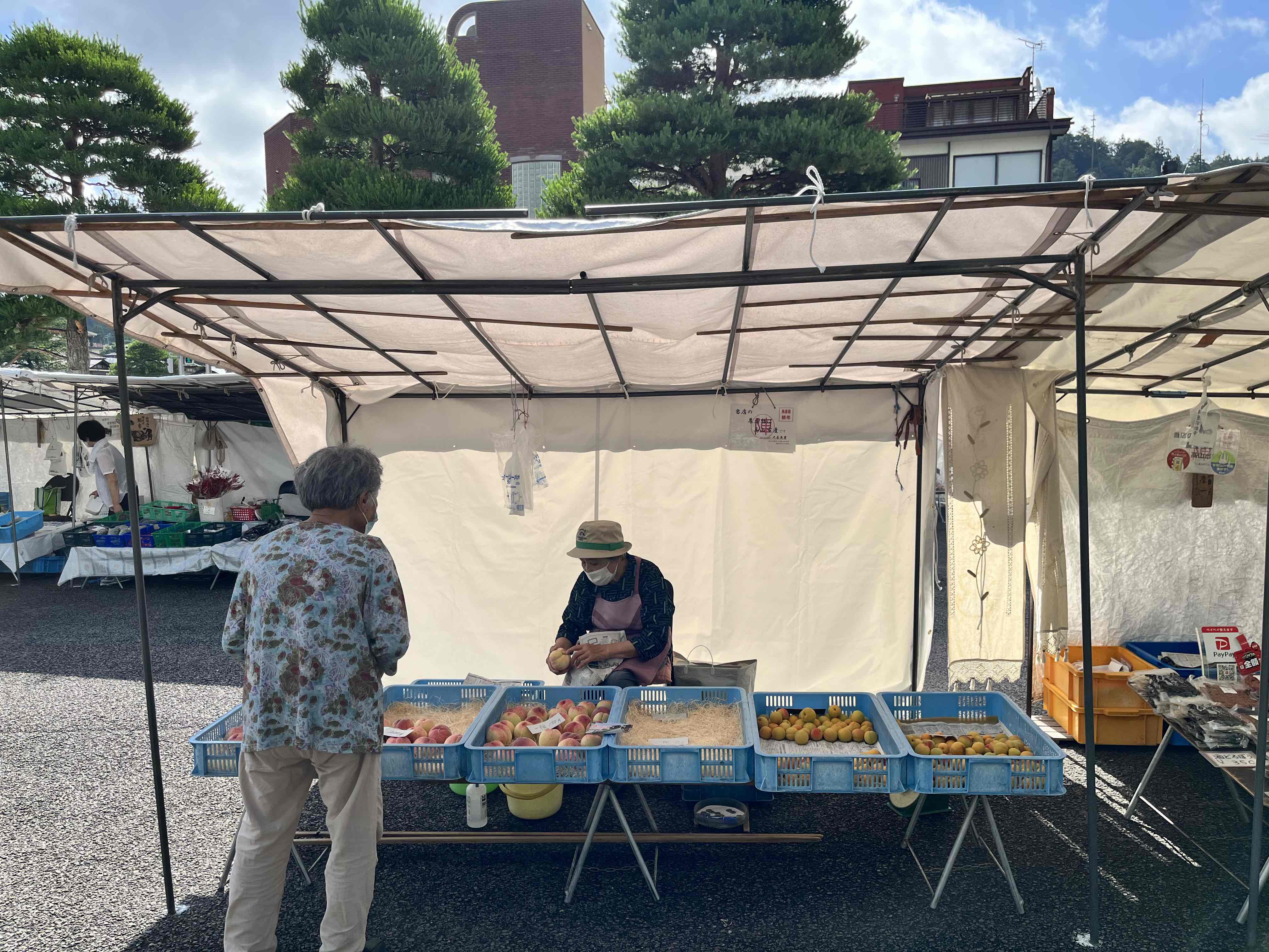 朝市には時期の果物が沢山ならんでいますよ。